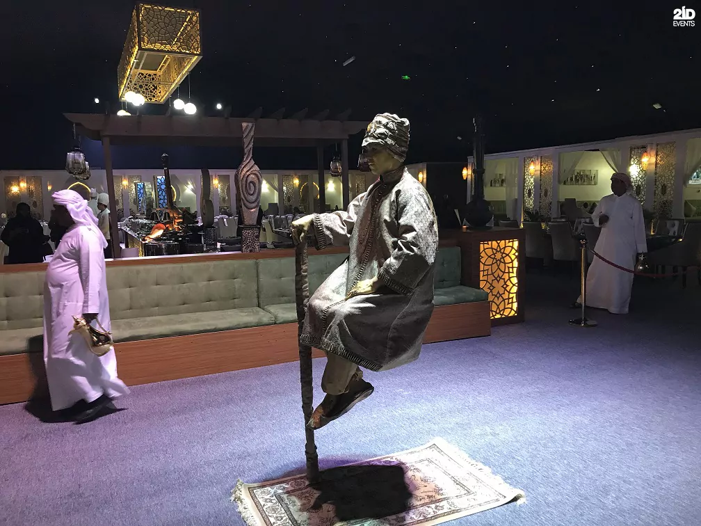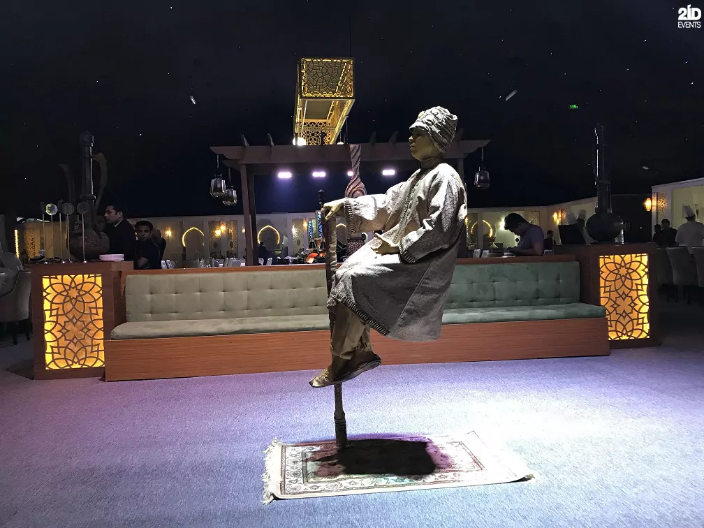 The Holy Month of Ramadan is in full progress and 2ID-Events is participating in the majority of significant celebrations. Recently we had one in Abu Dhabi with Arabic Calligrapher who was writing names and wishes to guests, Tanoura Dancer with a Ramadan program and music, Musaharati inviting the guests with his drum and also a Levitation statue that is so appreciated by the audience every time!