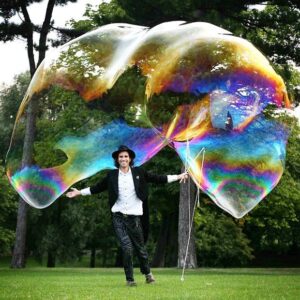 One of the most enjoyable performances at kids parties! To watch fascinatedly the show, be participate, to find yourself in the middle of a giant bubble – what can be better?