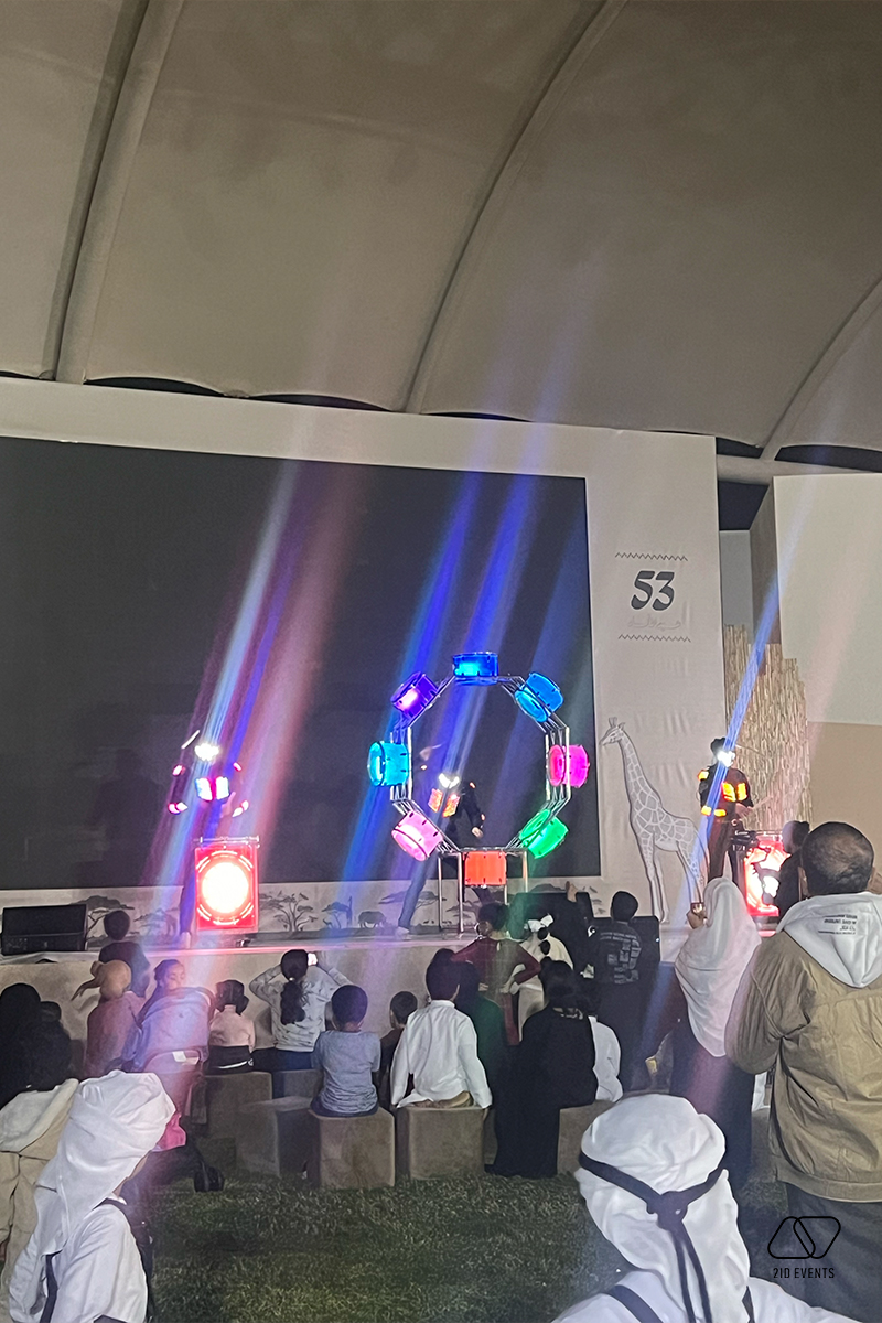 As the entertainment partner for Al Ain Zoo’s National Day celebration, we curated an unforgettable experience filled with diverse activities and vibrant performances. The event featured an engaging stage show and captivating roaming performances, including our popular LED Jumpers, Roaming TV Heads, Science Show, and a mesmerizing Cello Acrobatics act. Adding a rhythmic twist, the Kitchen Stomp Show brought dynamic energy to the day.