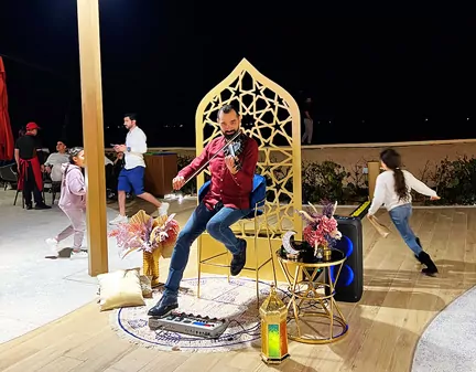 We are proud to showcase a case study from our portfolio, "Ramadan Nights," a project that highlights our commitment to creating bespoke entertainment experiences. For "Ramadan Nights," we developed three custom environments tailored to three separate venues, transforming each space into a haven for cultural expression. During Ramadan, our venues came alive with the soulful performances of our Oud, Qanun, and Violin players, each Friday and Saturday, bringing a unique flavor to the evenings.