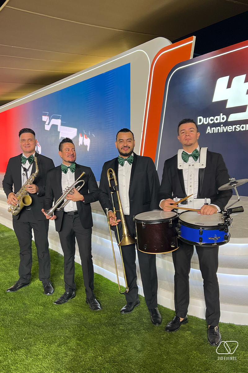At the Ducab Anniversary, we proudly served as the entertainment partner, setting the stage for an unforgettable celebration. As guests arrived and mingled, our live Brass Band roamed the venue, greeting attendees and infusing the atmosphere with vibrant, festive energy.