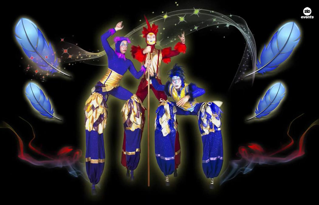 2ID EVENTS amuses any audience by Acro-stilts Performers. These talented artists with their costumes and movements are very similar to incredibly beautiful mysterious birds. They are definitely concentrate the attention of your guests on their performance. In addition to bright images, our artists perform difficult acrobatics on stilts, which deserves special attention. So no matter the occasion, whether it will be a festival, fair, parade, private party, promotion or other event, Acro-stilts Performers are sure perfectly emphasize it.
