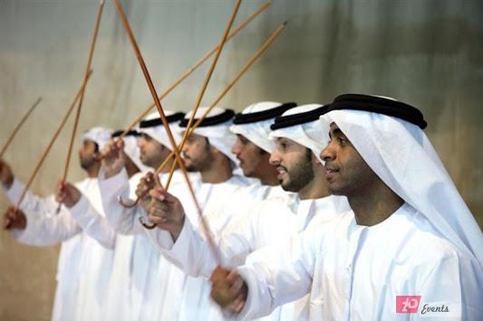2ID-Events provides the most important Arabic events with popular “stick” dance, traditional fascinating UAE folk dance. This hypnotizing dancing act accompanied by drumming and performed by handsome Arabic male artists. Ayallah Dancers display the unity and cooperation amongst tribal people.
