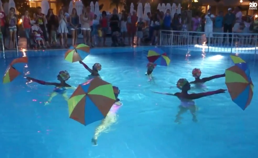 This talented Group able to adapt our performance to suit any location or venue where there is water. Professional Synchro Swimmers have performed in the sea, various swimming pools, aquariums and portable water tanks. Our sole aim is to provide an impressive performance that is unusual, beautiful and one that your guests won’t forget!