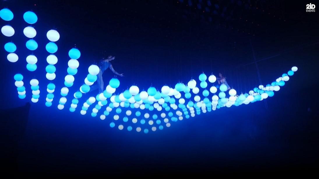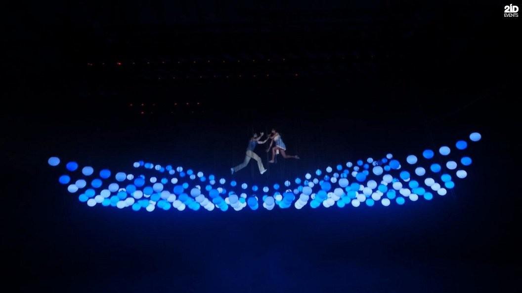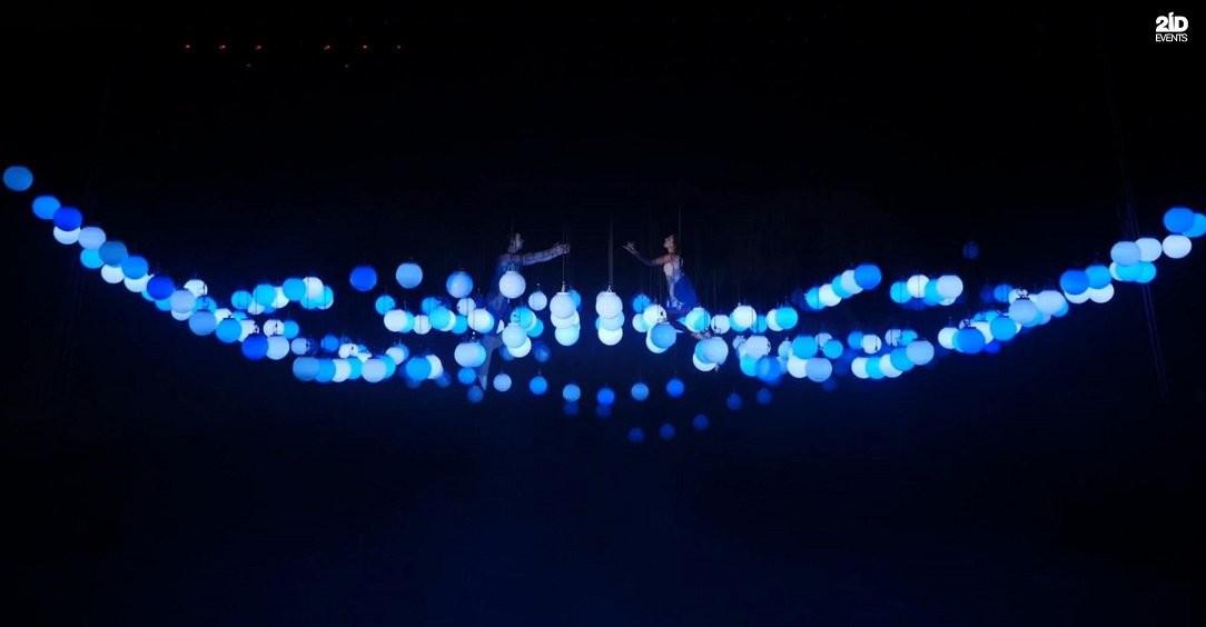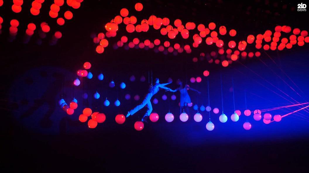 One of the gentlest and spectacular visual show. This performance kind of mystery. LED floating lights and two professional acrobatic dancers with touching choreography. The show seems very light and air, like there is no gravitation for these two at all. With no words they will tell a story creating a real masterpiece of bodies and flexing.