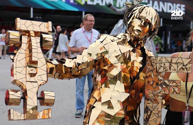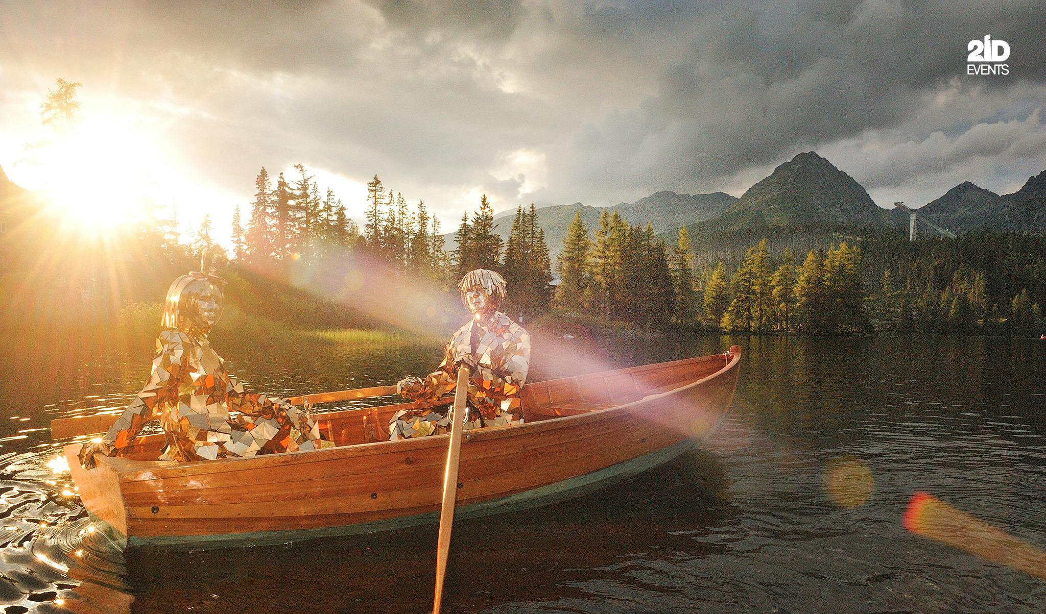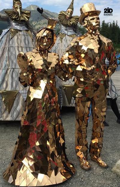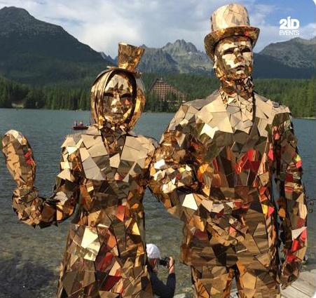 The fantastic performers made of pieces of golden mirrors. Together with wonderful theatrical masterpiece and music all together are creating the unforgettable performance that is sure to entertain all your guests. Amazing, impressive and authentic.