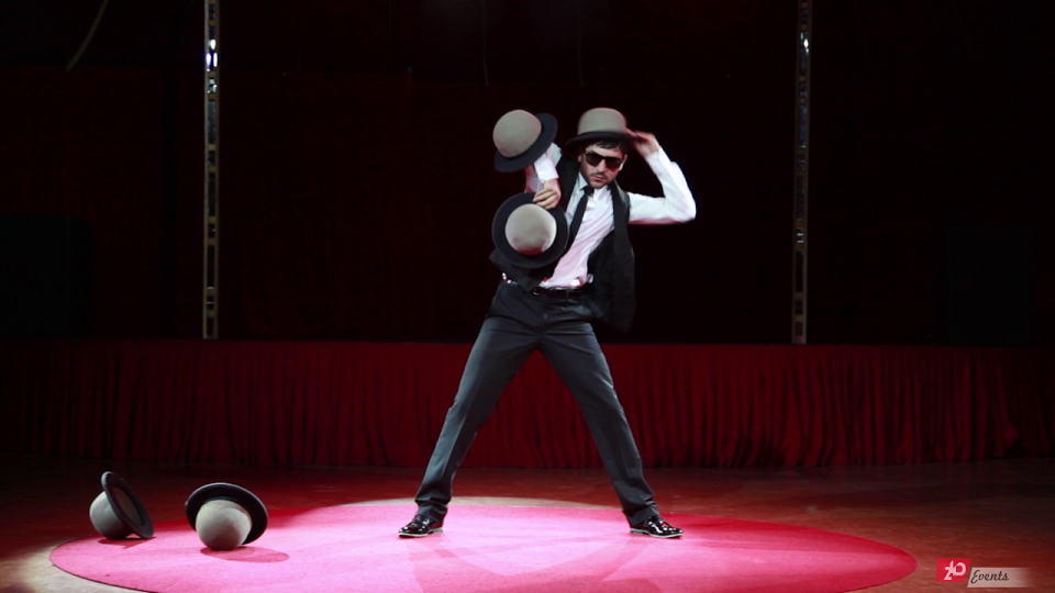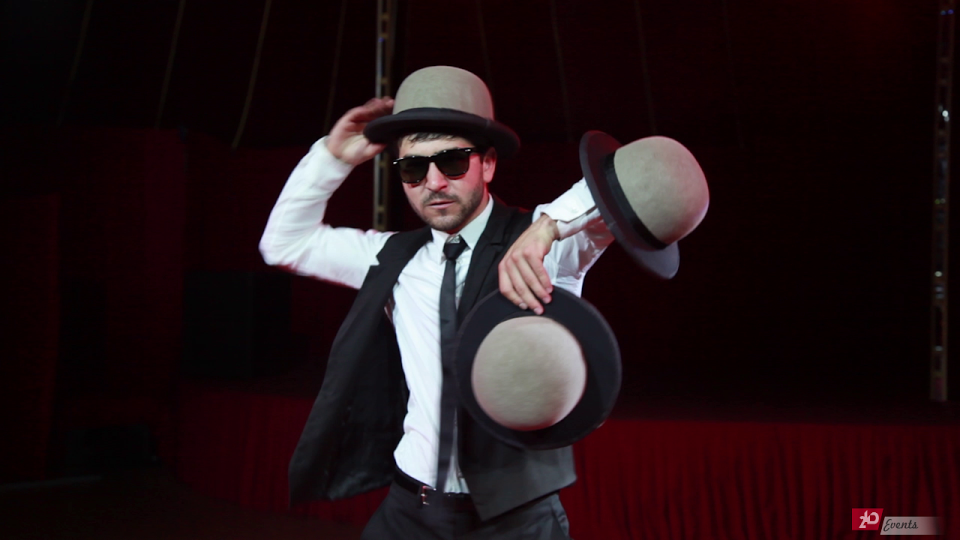 2ID-Events entertains with the juggling act, which will delight audiences of all ages. Young and talented Hat Juggler gives memorable performances with plenty of audience interaction and engagement. Displaying a high level of juggling tricks, he can impress guests as they arrive, entertain queues, entice potential clients to your trade stand, and WOW spectators at public events and store openings. Wonderful Hat Juggler will be ideal entertainer for such events, as: gala dinners, product launches, corporate events, private and family occasions, themed parties, trade shows etc.