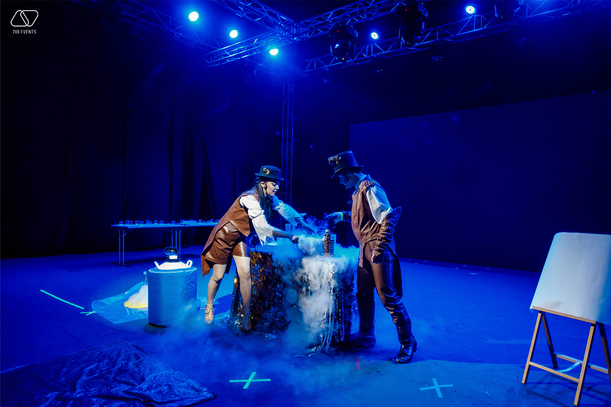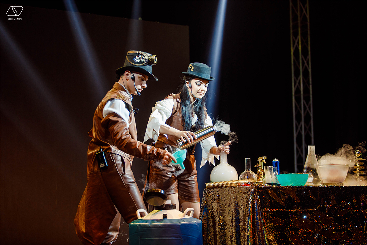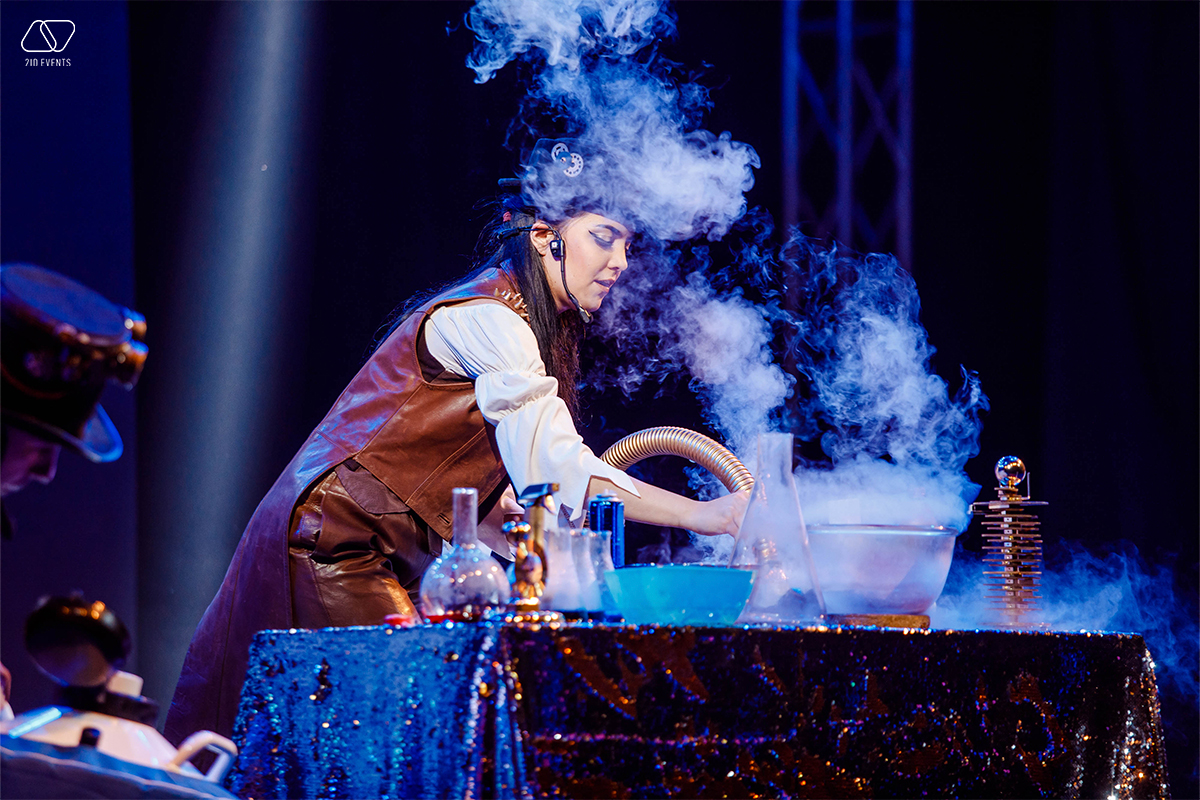 Our crazy experimenters in unusual themed costumes will immerse the audience in a magical atmosphere.