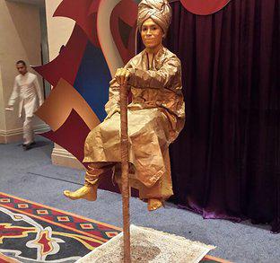 This act is a great occasion to perplex your guests... It seems like they are held aloft via nothing. The Levitating Statue looks so amazing and impressive and gives your visitors unforgettable photos and something to talk about the moment they arrive. Space requirement for this show is 3 x 3m. The Levitating Statue is suitable for: Wedding, Anniversary, Award Ceremony, Gala Dinner, Product Launch, Exhibition, Club Party, Private Party and Thematic Party.