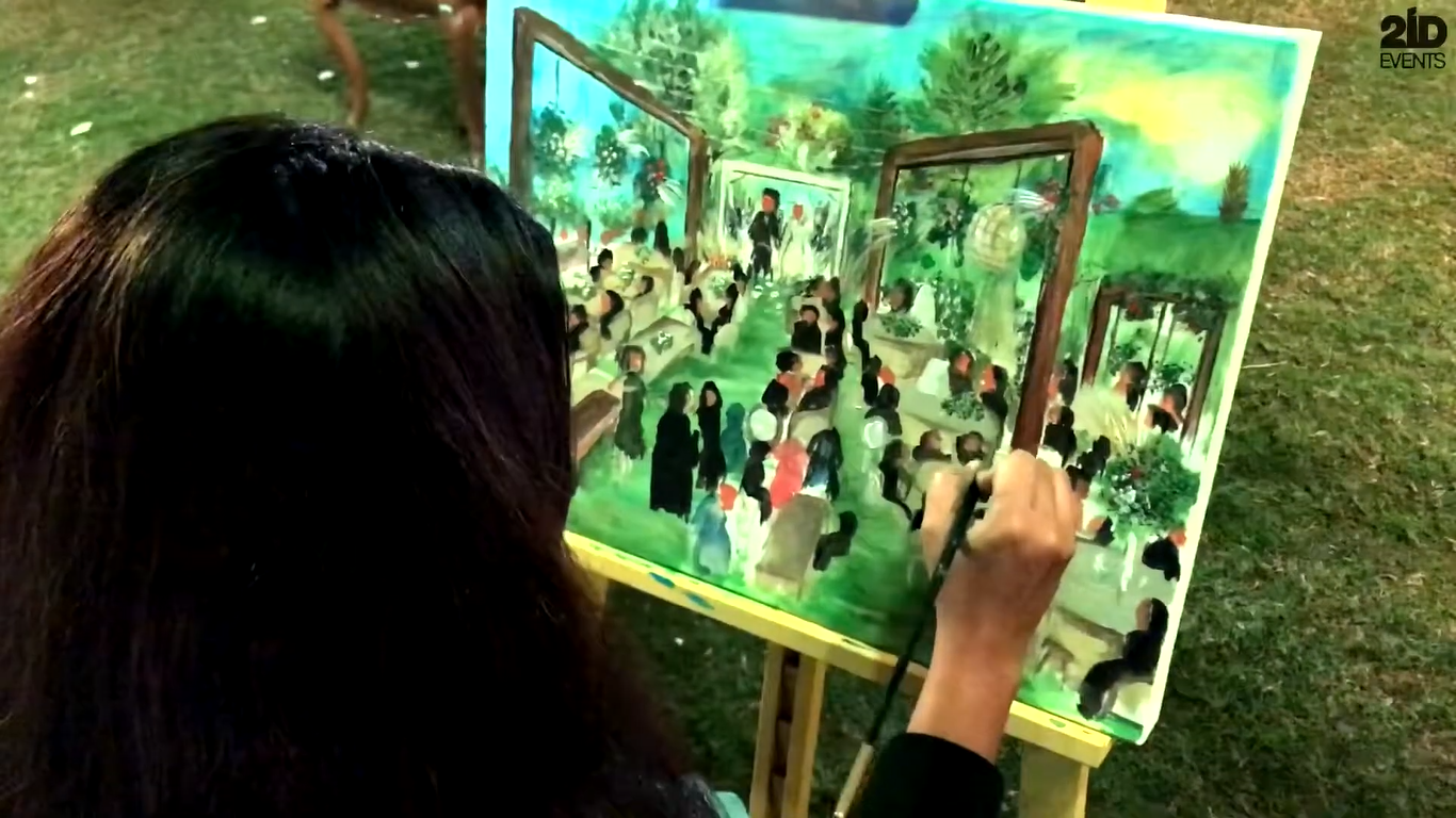 Live Painting is a unique and entertaining event service where our artist creates a painting from start to finish as the event unfolds. It is mesmerizing to watch, and the work of art produced will be cherished for a lifetime. Live Painter isn't just for weddings! Galas, corporate events, private parties of all kinds are great for a live event painting.