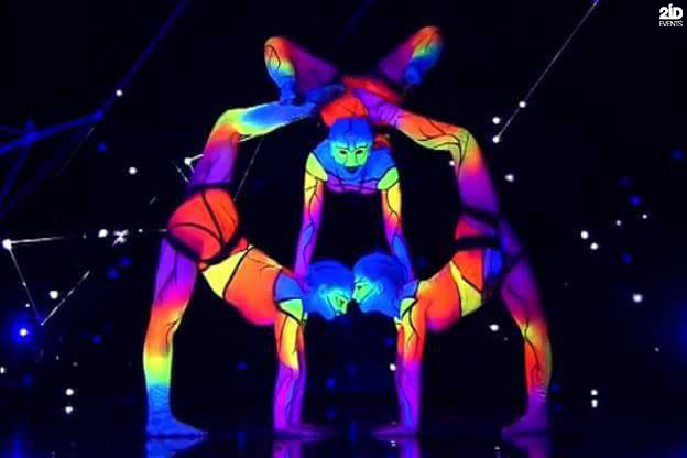 This show of Neon Contortion Trio is really one of the most impressive in this field. The special equipment and the uniquely developed programs make it a real pearl of any event they participate in. So you will be amazed with this performers!