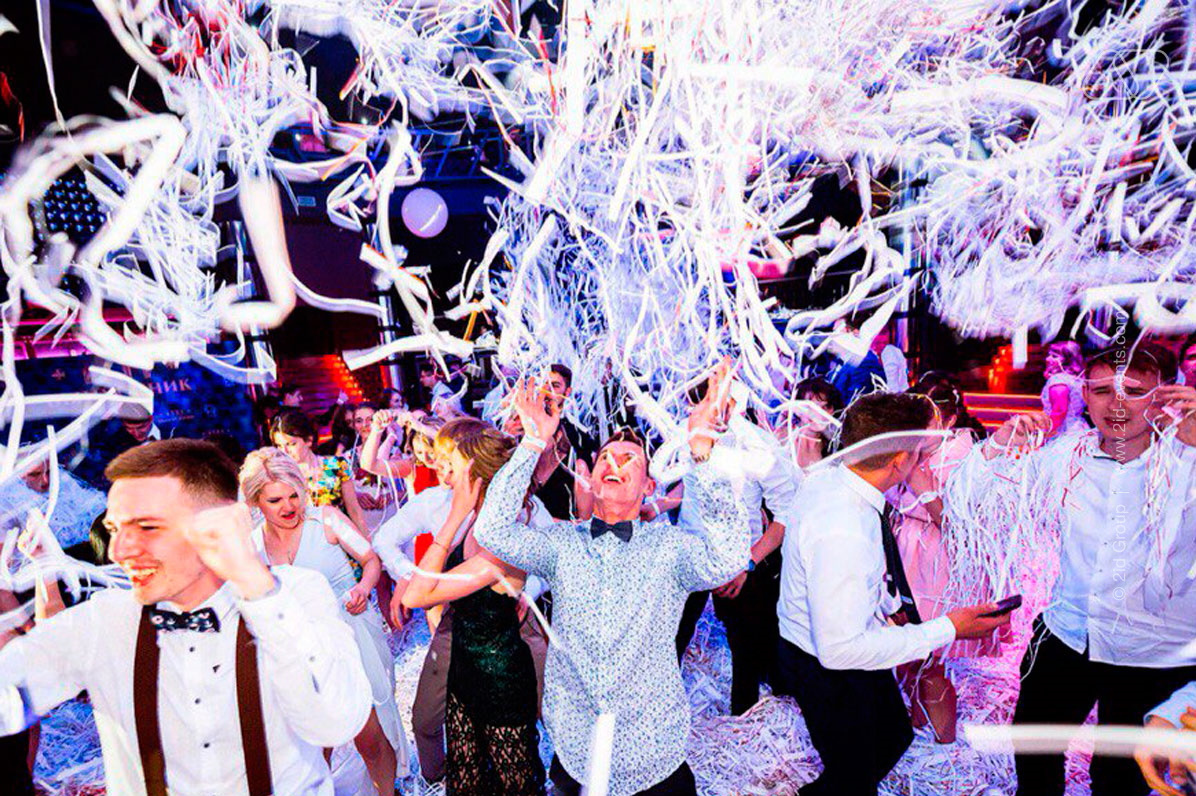 Awesome entertainment for any event! Have you ever thought that your guests could have fun like children? We will show it to you! A huge number of paper ribbons, colorful confetti, giant balloons and incendiary dances! What could be brighter than such a holiday finale? Our paper activity will give you and your guests incredible emotions!