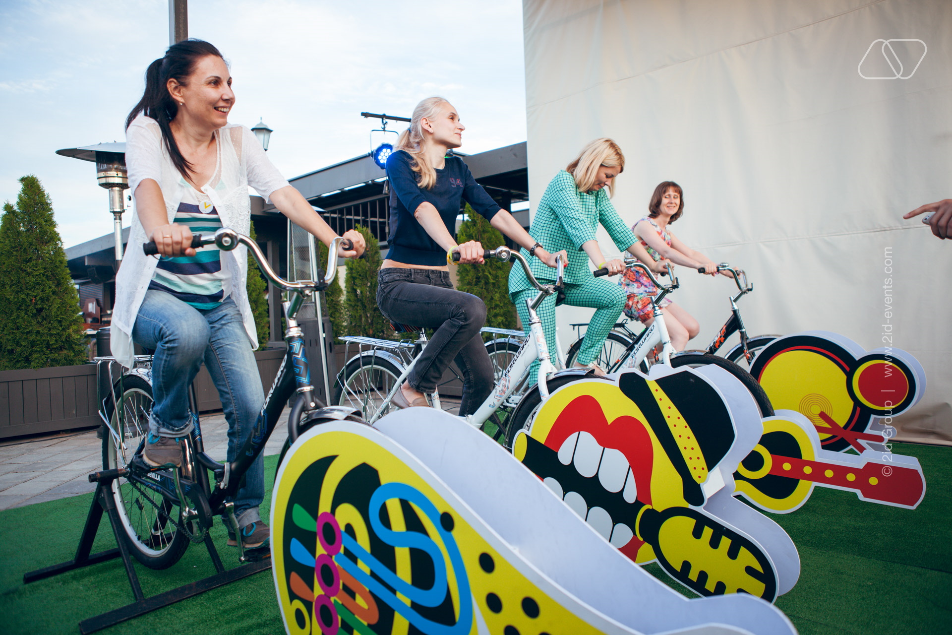 Best activity and workout ever! It needs the audiences to pedal the exercise bikes and a light appears on the screen. This light then goes higher when they pedal; the more they pedal, the higher the pedal gets. Stay active, stay fit, stay healthy, but do this having a lot of fun and happiness. Make the audience crazy and bring them unforgettable emotions!