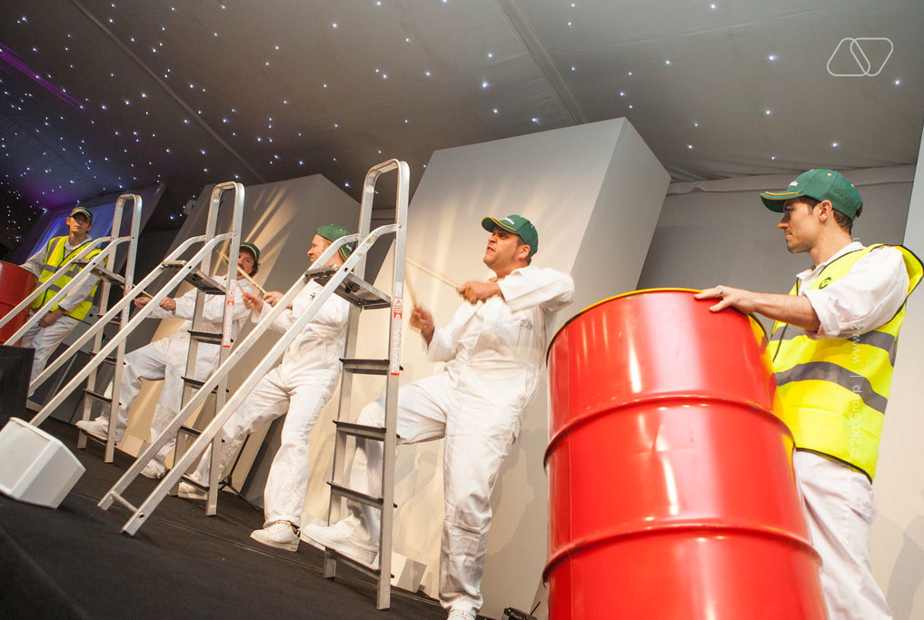 This amazing troupe of percussionists create an incredible spectacle of sight and sound as they present their dynamic and exciting sets of highly choreographed performance. The players use all sorts of objects to fuse together driving arrangements played on ladders, traffic cones, cars, exhausts, wheels, windows and anything else they can get their hands on! Avaliable as a suprise act that will leave guests gobsmacked