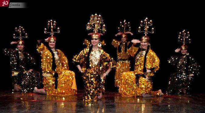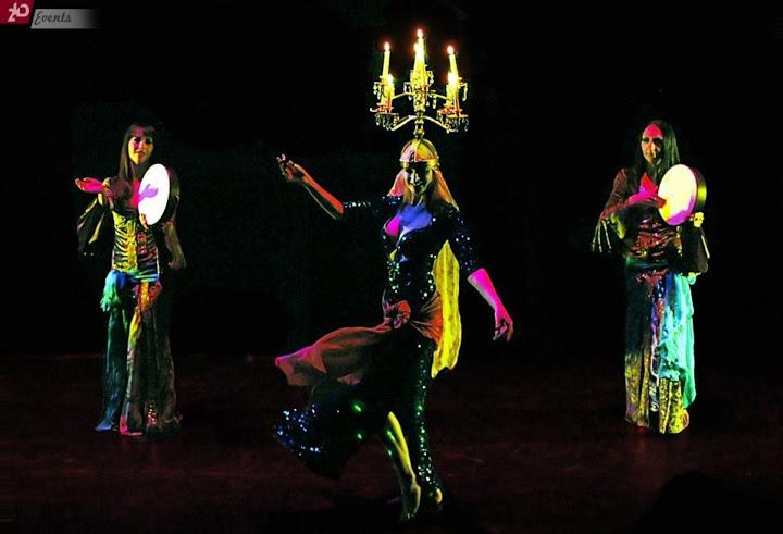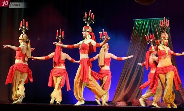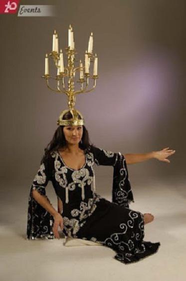 The Shamadan is a large candelabrum balanced on top of a dancer’s head, in a tradition unique to Egyptian dance. This beautiful dance prop is historically used in the Egyptian wedding procession, or zaffa. Because of the Shamadan's size (available with 5, 9 or 13 candles) the body's balance point is altered and it requires high skills, long exercises and an absolute isolation of certain body parts in order to perform the various dance figures in a "floating" style. Raqs Shamadan usually contains a floor element with which to show off the skills. Originally this dance was performed during weddings, and has been known for a long time in various areas of the Mediterranean. It's always a pleasure to watch this style performed on stage, no matter if solo or group dance. Of course there is also the dance with a beautifully decorated tablet with candles and petals - but witnessing a dancer with a Shamadan decorated with glamorous strings and pearls or glass ornaments and the tapered burning candles is always a memorable experience for guests. Music for Shamadan includes traditional musical pieces which mention the Shamadan and music that has been used by name dancers known for their Shamadan performances.