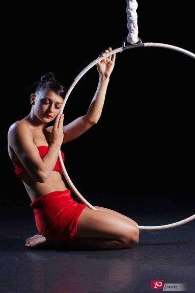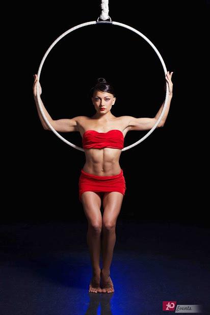 2ID-Events makes any event fabulous with skilled aerial acrobat performing on a big ring. Presenting to your guests unthinkable movements and enchanting grace, talented performer will create a dramatically elegant ambience, guaranteed to mesmerize audiences with her demonstrations of incredible strength and flexibility. Known for thrilling audiences with her high-energy and tightly choreographed Solo Aerial Ring Act, this fascinating performer combines effortless aerial acrobatics performed upon a giant ring that is suspended high in the air. With great professionalism she provides a refined visual prop to create a truly awe-inspiring performance.