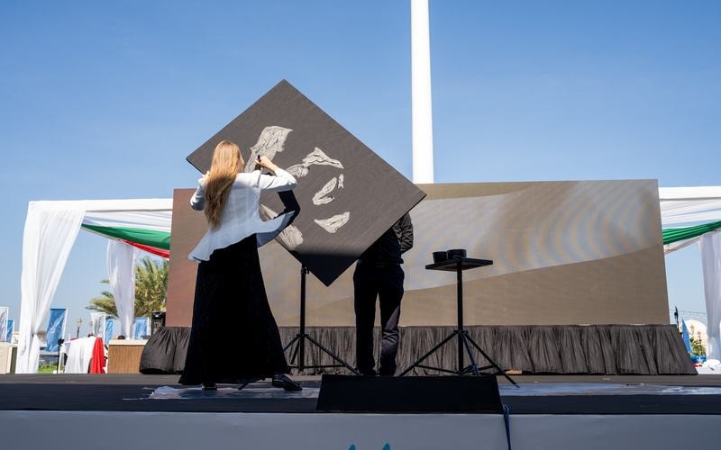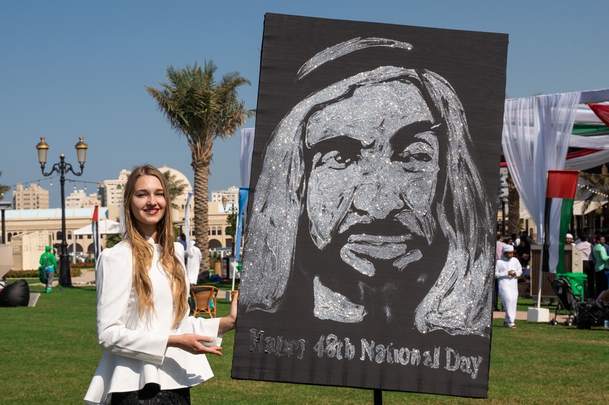 The audience was also stunned by an extraordinary glitter show. In a matter of minutes, the artists drew a picture of Sheikh Zayed bin Sultan Al Nahyan that impressed even the most demanding guests.