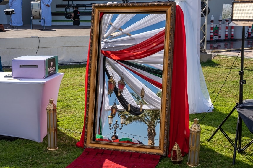 Being limited in time and options, we found an interesting replacement: a photo booth. It would be perfect for such an occasion: the guests would be able to take photos and capture great memories. The client approved, and the booth was delivered to the site in a matter of hours.